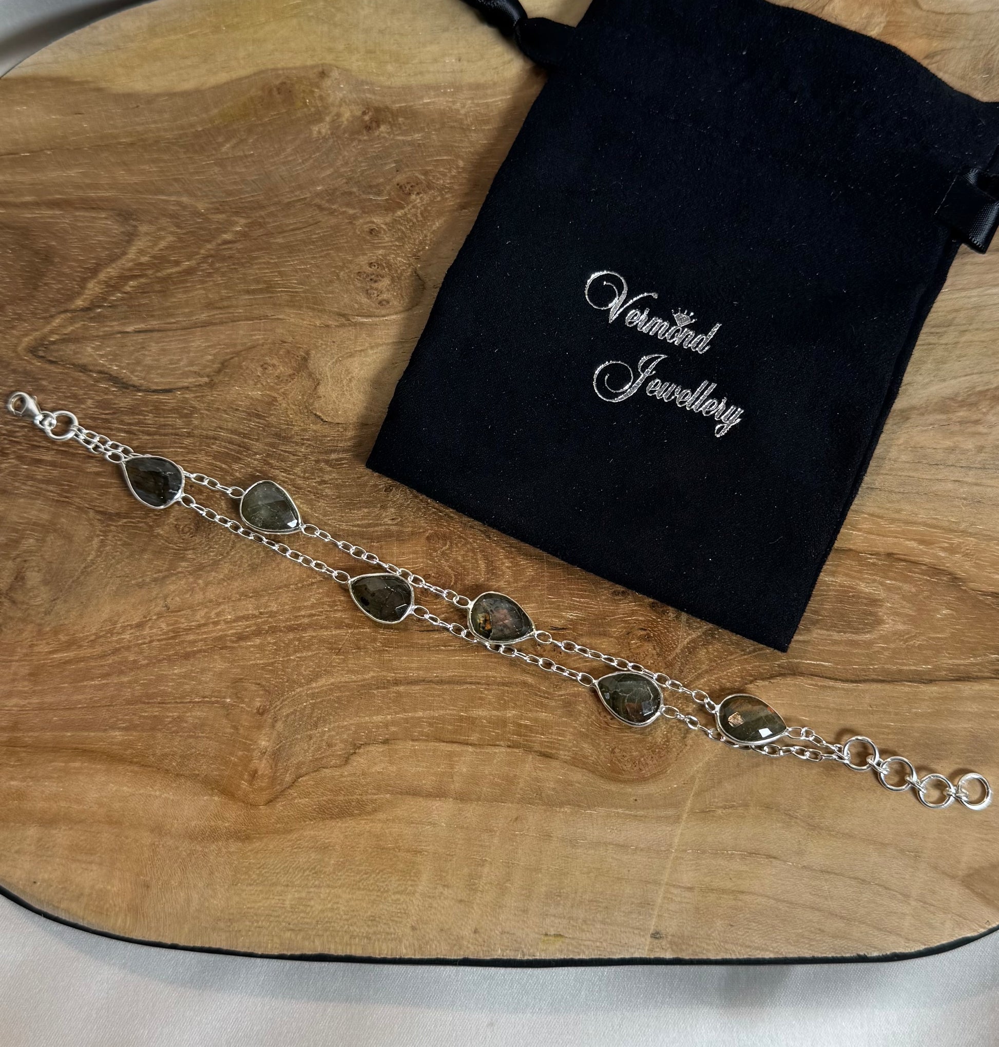 Dubbele Labradoriet Facet Armband 925 Zilver