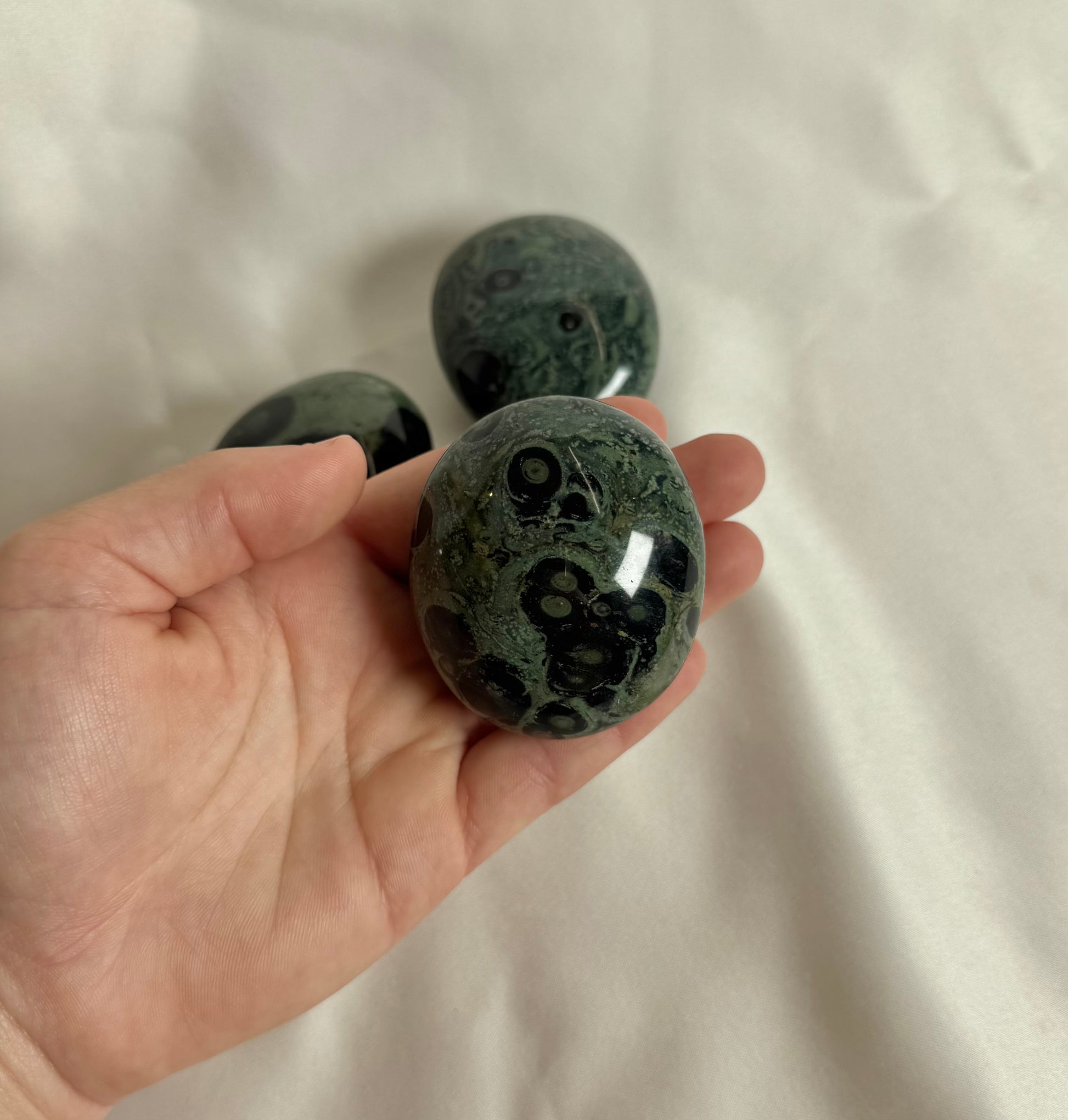 Kambaba jaspis wordt vaak gebruikt om kalmte en rust te bevorderen, vooral tijdens stressvolle situaties. Het helpt bij emotionele genezing door oude pijn en blokkades los te laten, terwijl het een gevoel van veiligheid en stabiliteit biedt. Deze steen wordt ook geassocieerd met het versterken van intuïtie en het bevorderen van innerlijke balans.