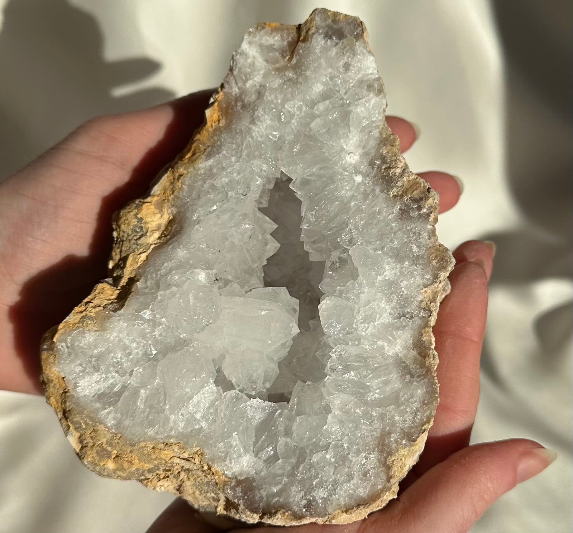 De Marrokaanse Geode straalt energie uit die helpt bij het zuiveren van de omgeving en het bevorderen van positieve energie. Ze hebben een kalmerend effect, verminderd stress, en helpt bij meditatie en zelfreflectie. De holle structuur van de geode is een metafoor voor innerlijke ruimte en groei.