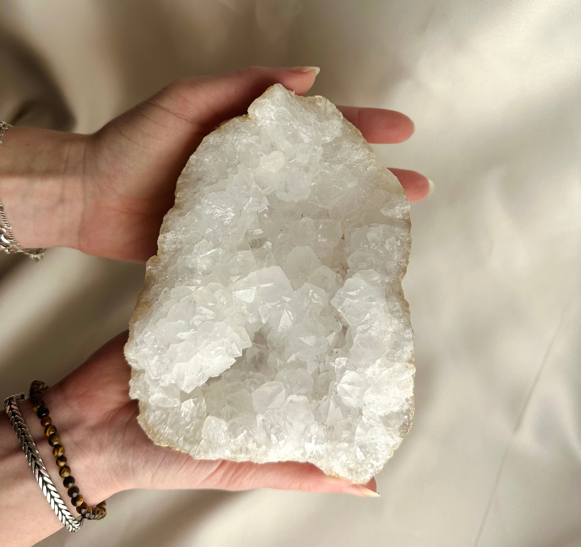 De Marrokaanse Geode straalt energie uit die helpt bij het zuiveren van de omgeving en het bevorderen van positieve energie. Ze hebben een kalmerend effect, verminderd stress, en helpt bij meditatie en zelfreflectie. De holle structuur van de geode is een metafoor voor innerlijke ruimte en groei.