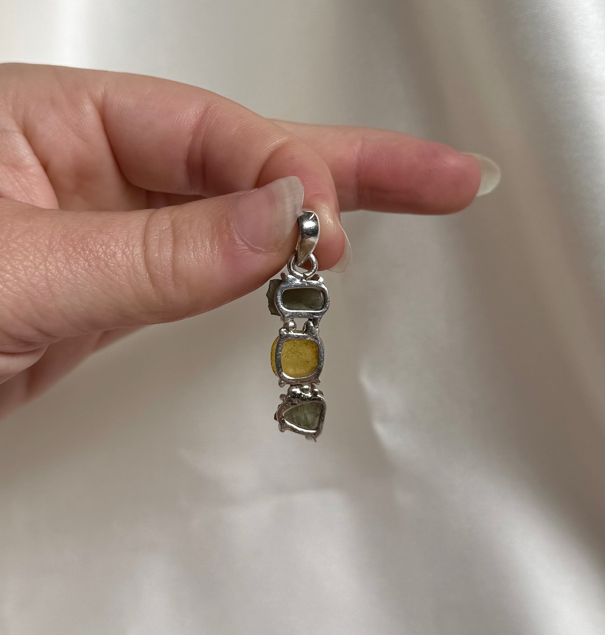 Moldaviet Dubbel en Amber Hanger 925 Zilver A15