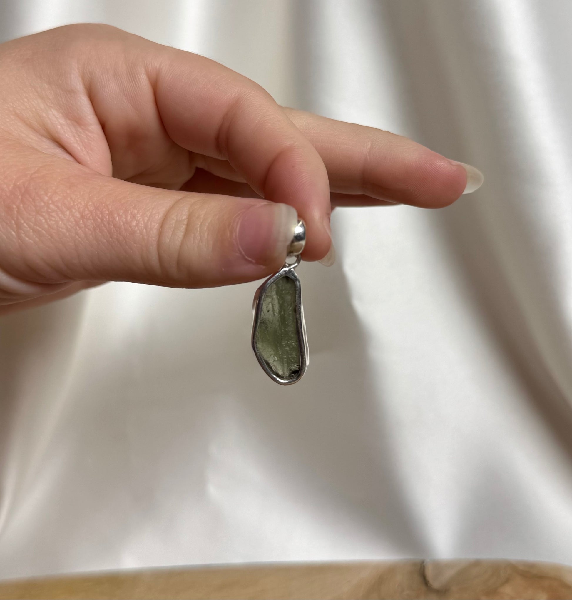 Vermijd water en chemicaliën: Draag het sieraad niet tijdens het douchen, zwemmen of schoonmaken. Moldaviet is gevoelig en kan dof worden bij contact met chemicaliën.