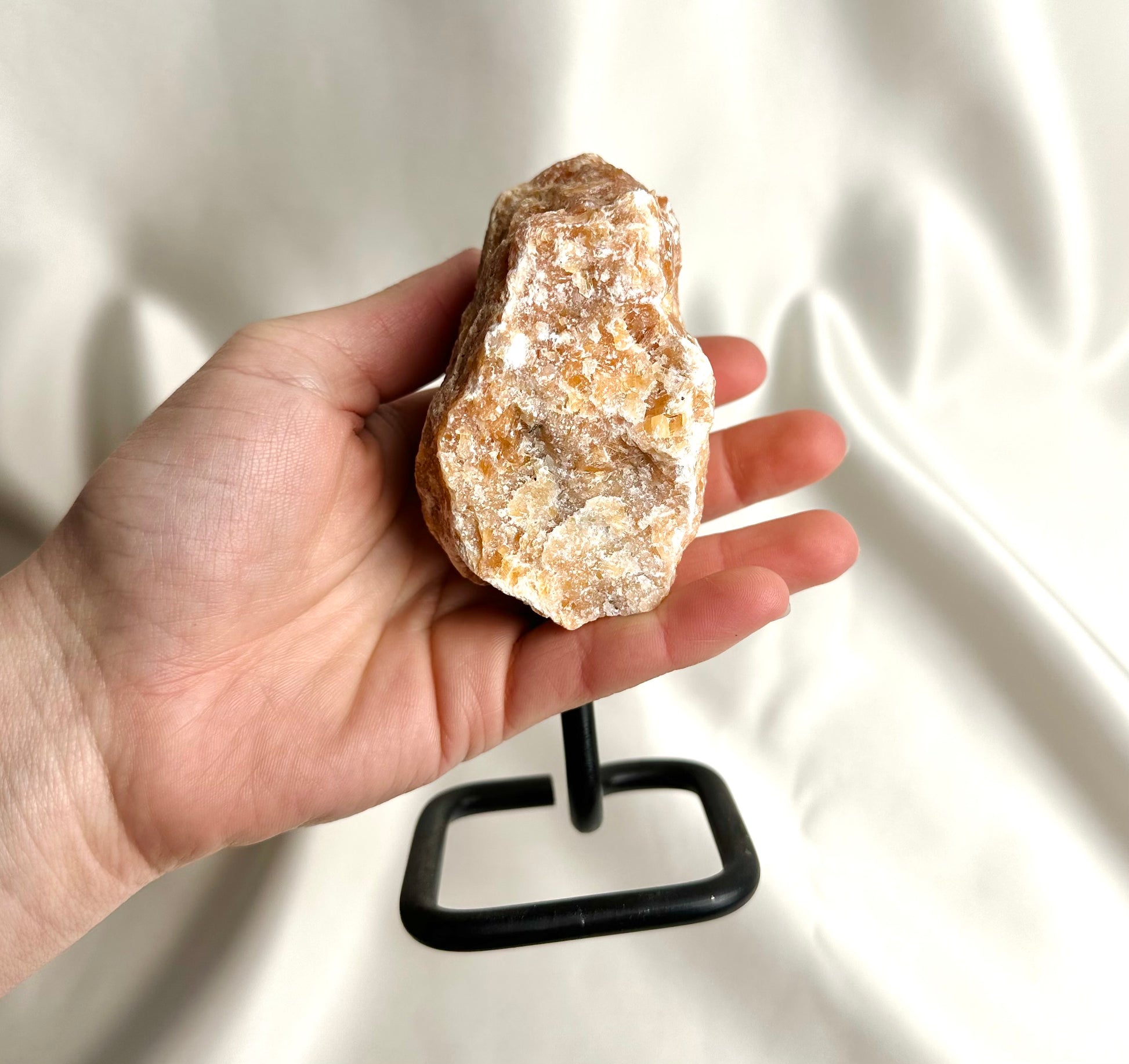 Oranje calciet wordt gebruikt om energie, vitaliteit en creativiteit te verhogen, terwijl het negatieve emoties zoals angst en frustratie helpt te verminderen. Het stimuleert het sacraal chakra, wat bijdraagt aan emotionele genezing en een betere balans in relaties. Fysiek kan het de spijsvertering ondersteunen en het immuunsysteem versterken.
