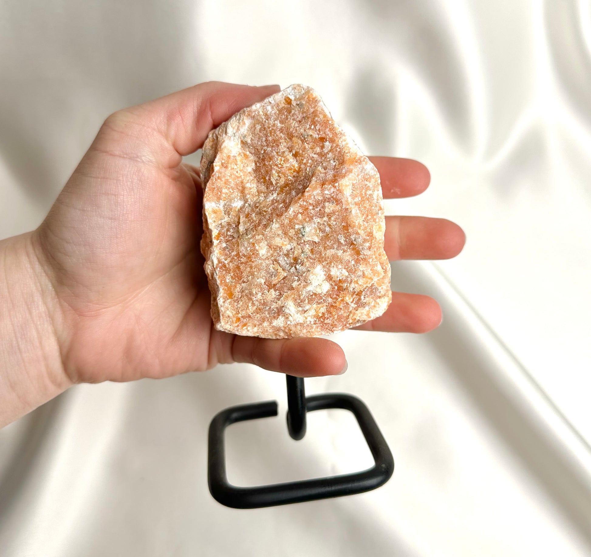 Oranje calciet wordt gebruikt om energie, vitaliteit en creativiteit te verhogen, terwijl het negatieve emoties zoals angst en frustratie helpt te verminderen. Het stimuleert het sacraal chakra, wat bijdraagt aan emotionele genezing en een betere balans in relaties. Fysiek kan het de spijsvertering ondersteunen en het immuunsysteem versterken.