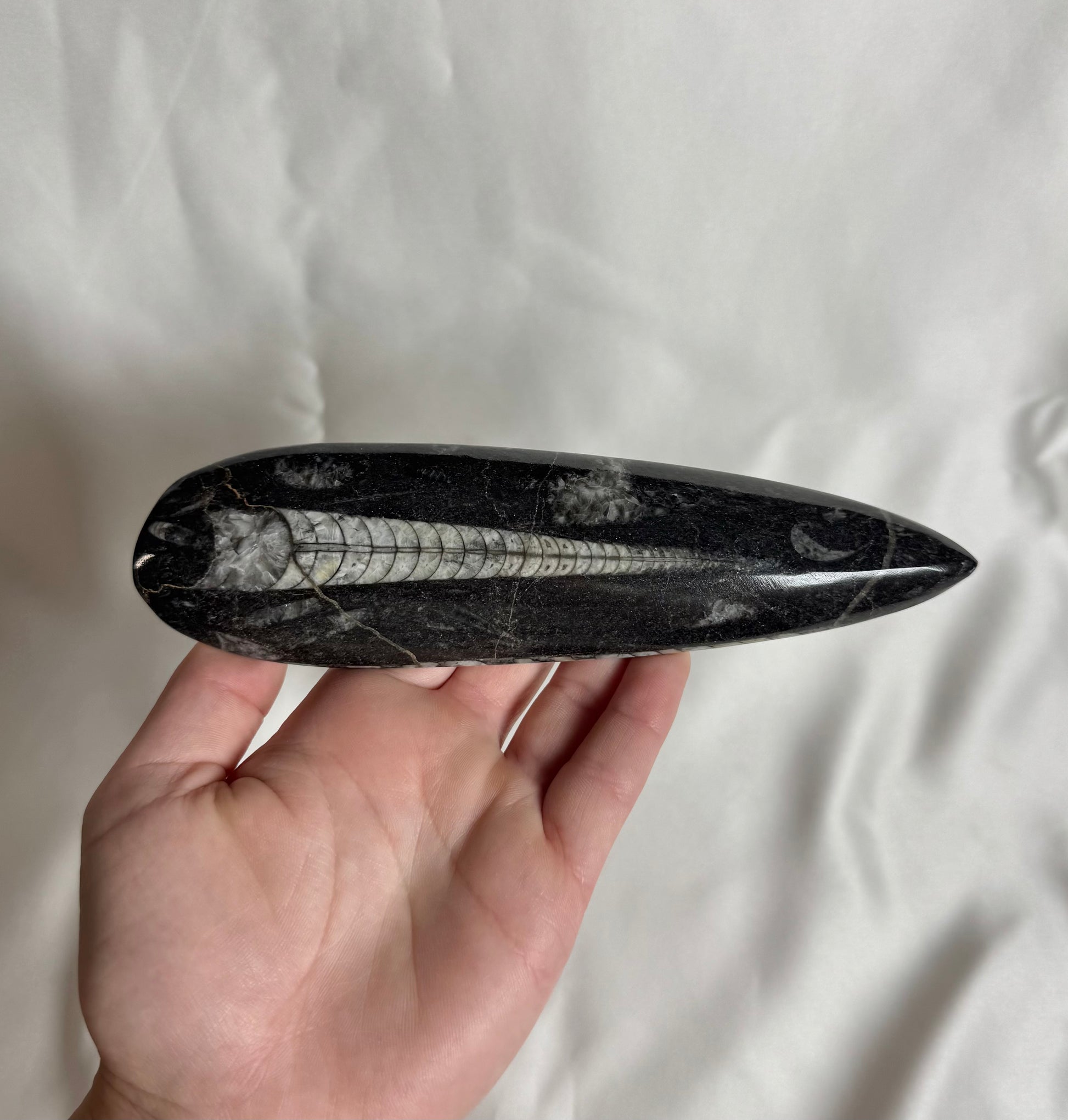 Orthoceras fossielen worden gebruikt om stabiliteit en bescherming te bevorderen. Ze helpen bij het versterken van de verbinding met de aarde en het bevorderen van energetische balans. Bovendien worden ze geassocieerd met het verbeteren van het geheugen en het stimuleren van mentale helderheid.