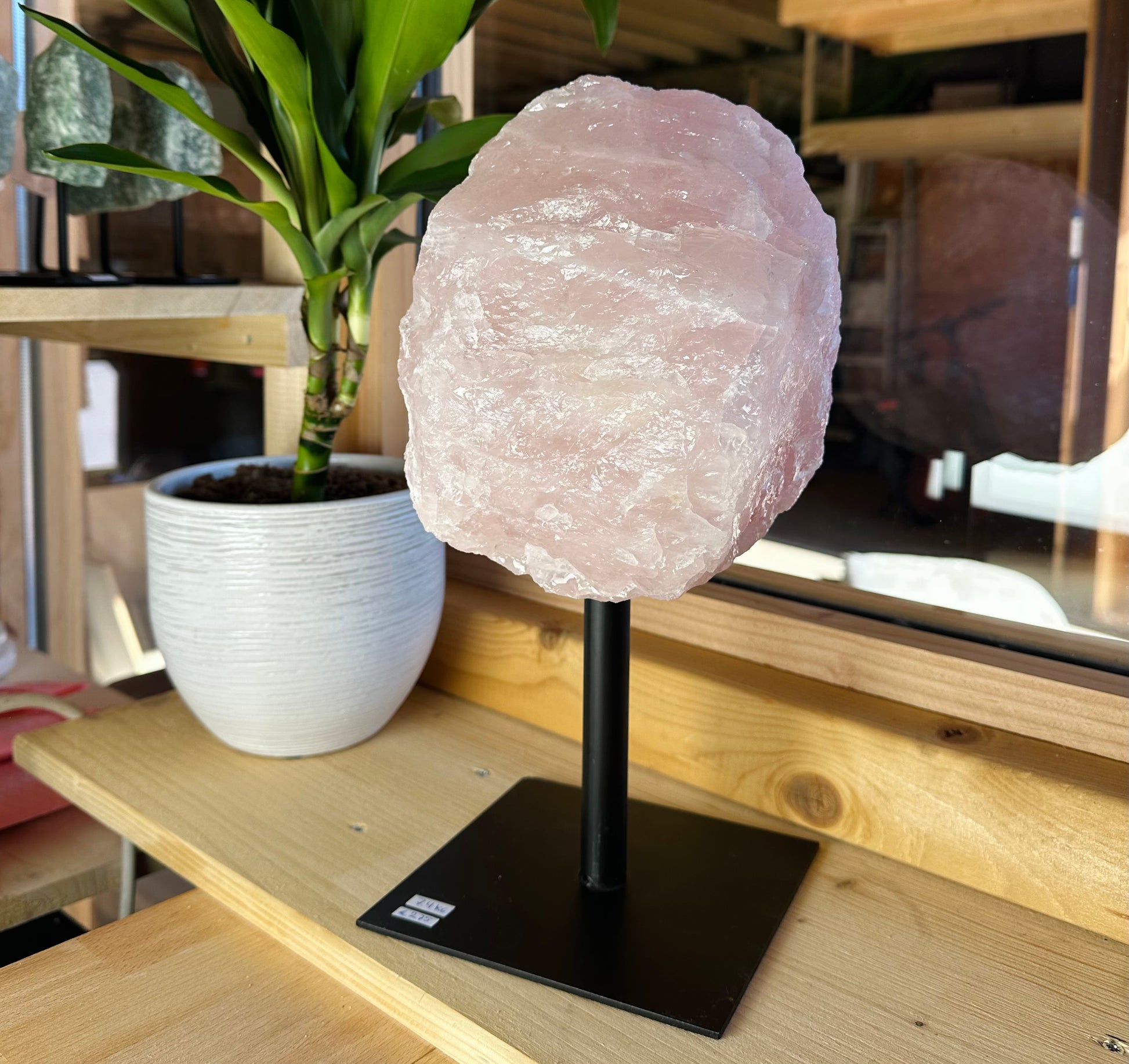 Deze prachtige ruwe Rozenkwarts op standaard is een zachtroze edelsteen die bekend staat om zijn kalmerende en liefdevolle energie. Het wordt vaak gebruikt om emoties te helen en relaties te versterken, zowel met anderen als met jezelf. Deze steen is ideaal voor wie op zoek is naar innerlijke rust en harmonie.